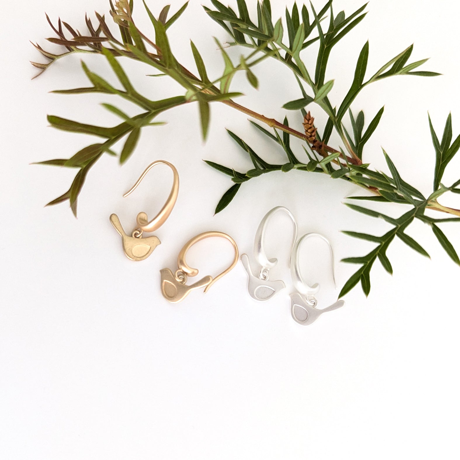 Like all our jewellery findings, our hook earrings are cast in brass (not nickel) and are entirely plated in matte silver and matte gold.  (All plating is .5 – 1micron in thickness)