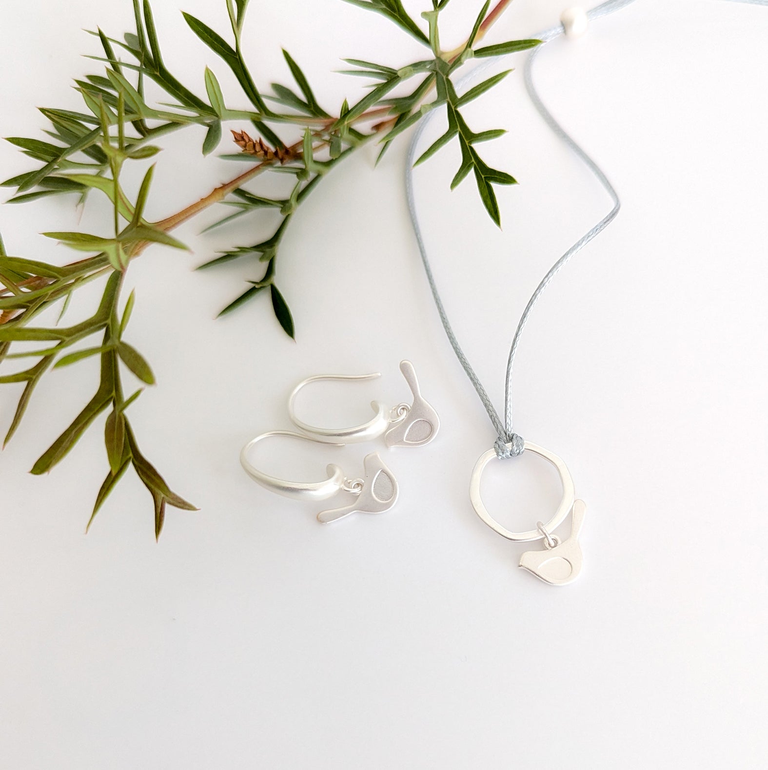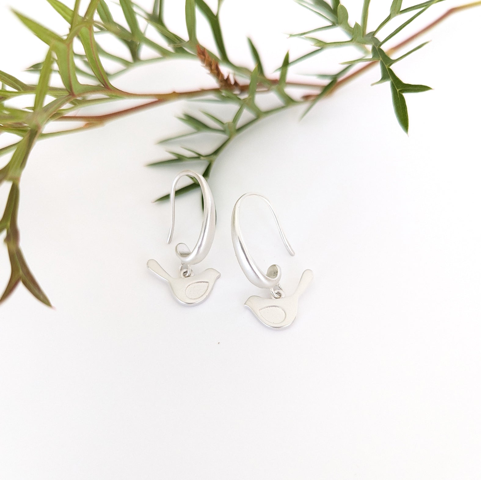 silver winded bird on silver chunky hook earring