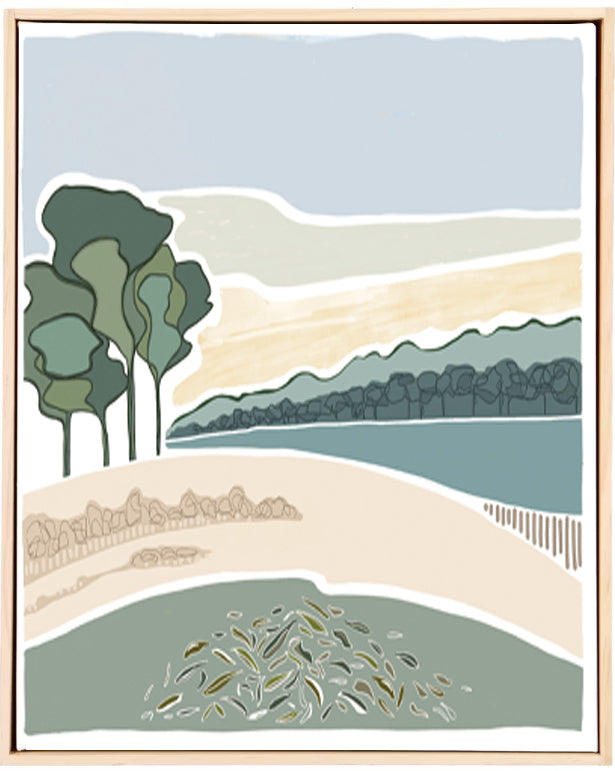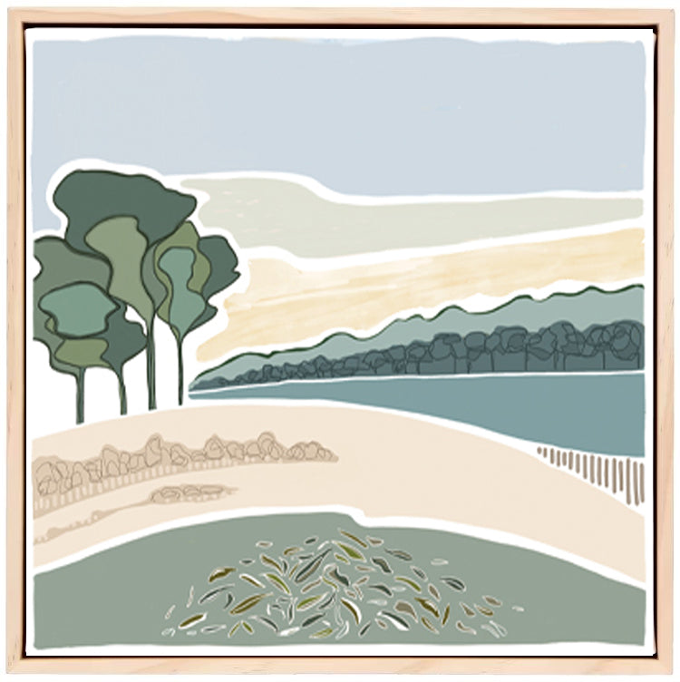 300mm x 300mm or 400mm x 300mm canvas print framed on a raw unfinished timber frame with saw tooth mount ready for hanging.