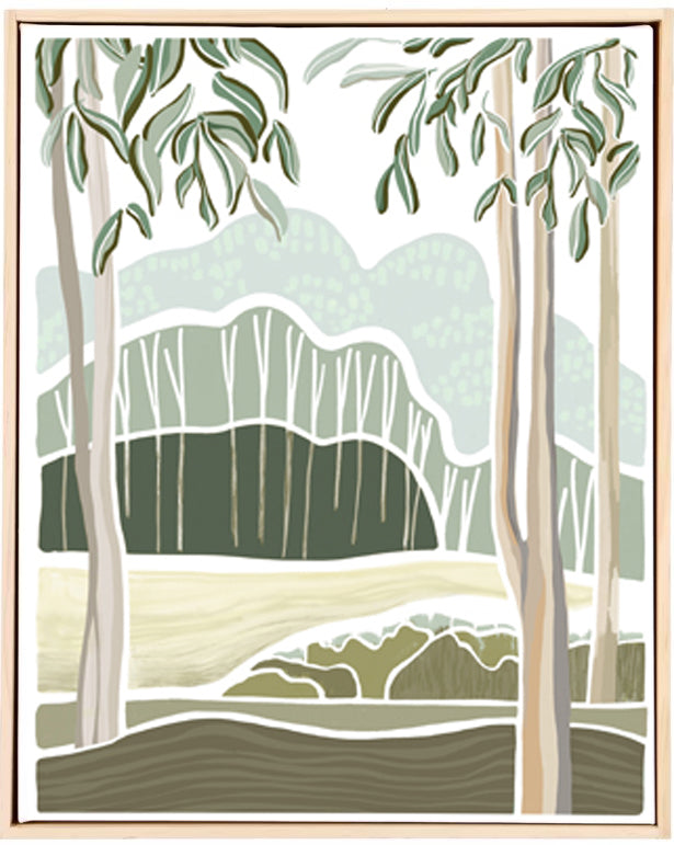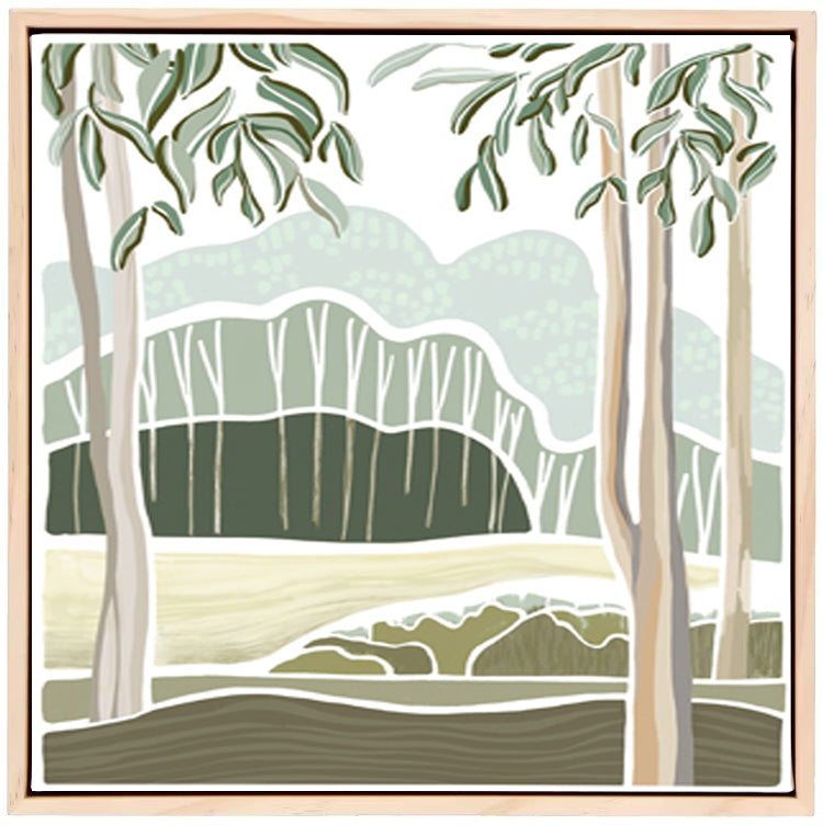 300mm x 300mm or 400mm x 300mm canvas print framed on a raw unfinished timber frame with saw tooth mount ready for hanging.