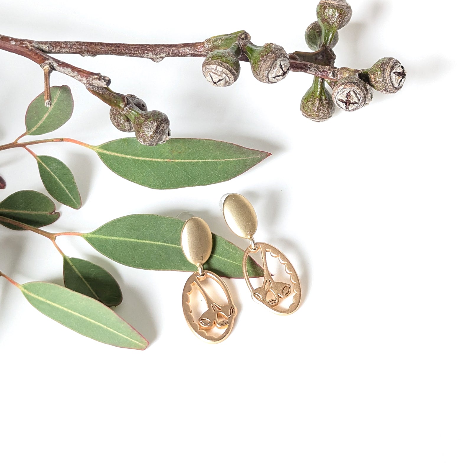 Feature gumnut pendant and studs are cast in brass (not nickel) and plated in matte silver / matte gold. All plating is 0.5 – 1.0 micron thick.